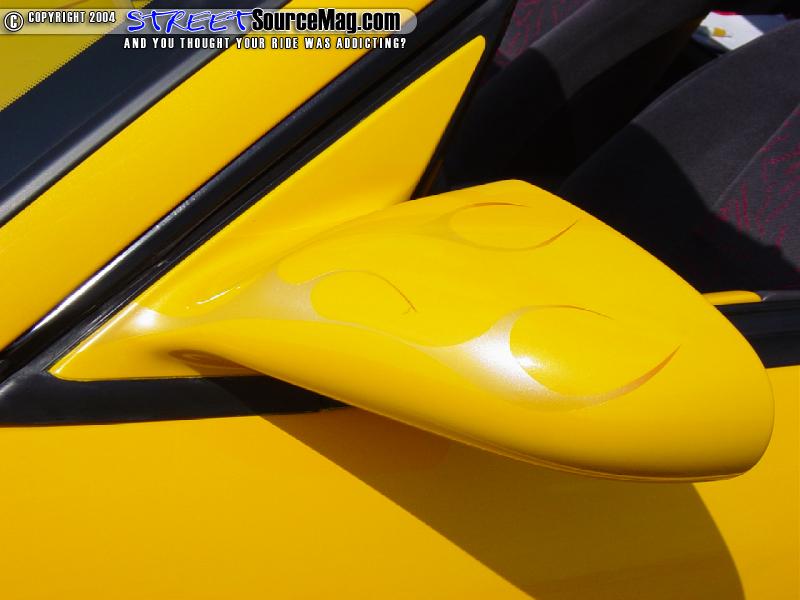 Brandon also added a 75 shot of nitrous from NOS. The valve cover was powder coated and a fiberglass engine cover was made and painted to match the exterior, complete with ghost flames. This piece makes for a great engine dress up for shows.