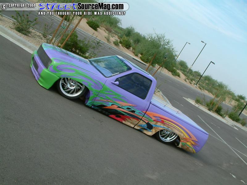 "My first guinea pig was a Nissan Hardbody that belonged to a friend. I got a whopping $60 for painting a sunset graphic down the bedsides and tailgate. At 19 I moved to OK where I got in with a local mini truck club (Lower Level) painting their logos, and the rest is history." As you can see Charles was brought up through the scene with one of the best and his talent truly shows through with every vehicle he touches.