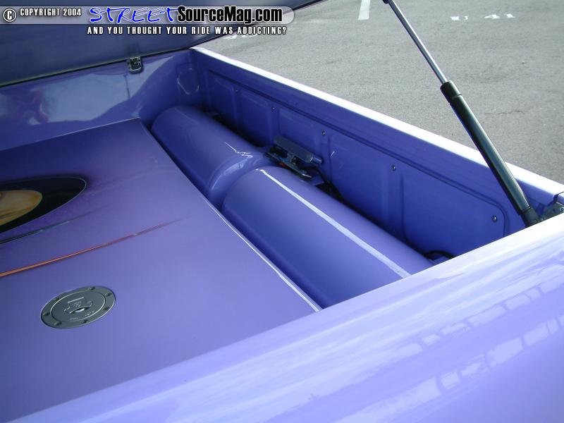 The air system is kept with air via two 450c Viar compressors. Many of the chassis components were then powder coated by Chuck at Performance Coatings of Oklahoma City while all other items where chrome plated by Ramos Coatings. The frame is also found to have many hieroglyphics to match the over all theme of the build up.