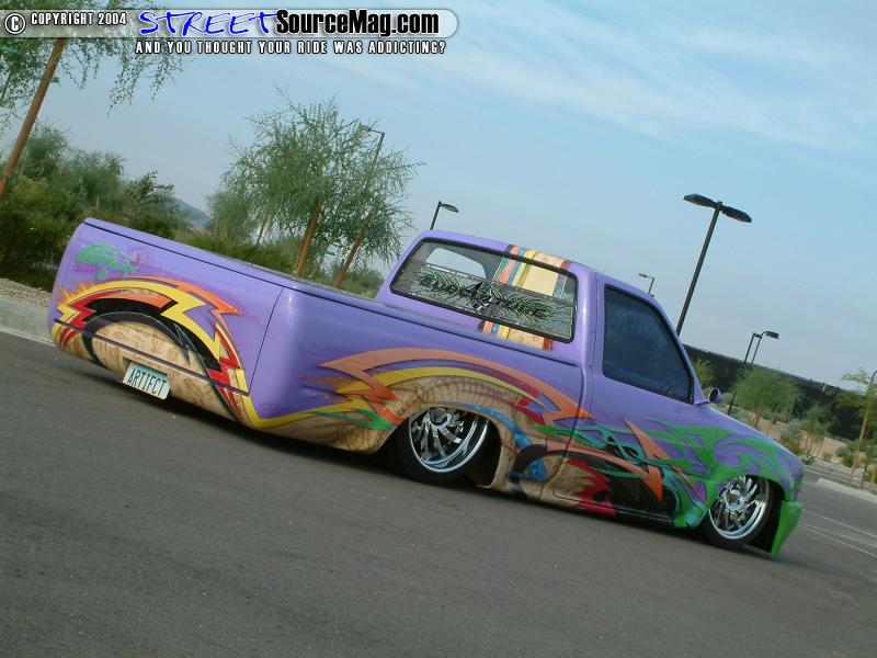 Not that the frame and chassis was complete, Charles would have Brad Houk of Prescott, AZ body drop the Toyota 2 ½ inches to help protect the frame along with that ultra low look and feel. To allow more room for the drop, Charles would have a 12 gallon spun aluminum dune buggy fuel cell installed under the bed.