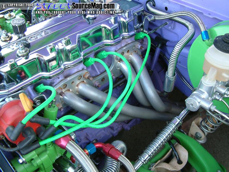 Next, a dual Webber side draft carburetors would be installed for that intense performance. A Cannon intake system would then be installed to help with the incoming quality air.   LC Engineering distributor assists the newly wired up MSD blaster coil and ignition for a good spark, while the drive shaft would be chromed for that over all custom appeal. Continuing with the bling, a chrome alternator with chrome engine pulleys and valve covers would be installed.