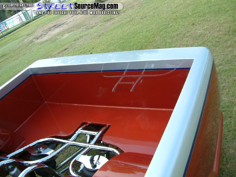 Next a Goodmark steel cowl induction hood would be installed to bring the front end together. Moving back the door handles would be shaved along with the gas filler being moved into rear fender. Finishing things up the doors would be set suicide style while the bed would be smoothed out.