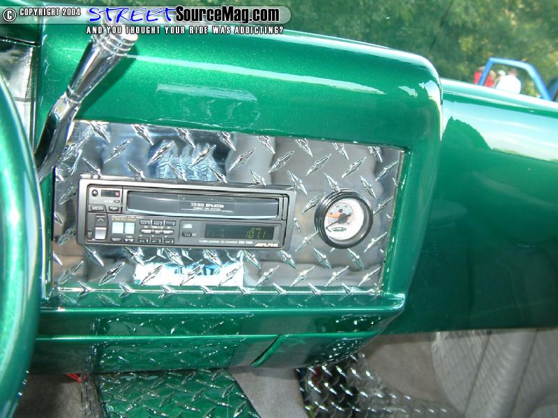 All aluminum diamond plate center console, floor mats and back wall would then be handled while a Billet Specialties steering wheel helps tie things together. The seats, doors and headliner would all be stitched by stretch of Sew Custom Interiors of Lebonon, TN.