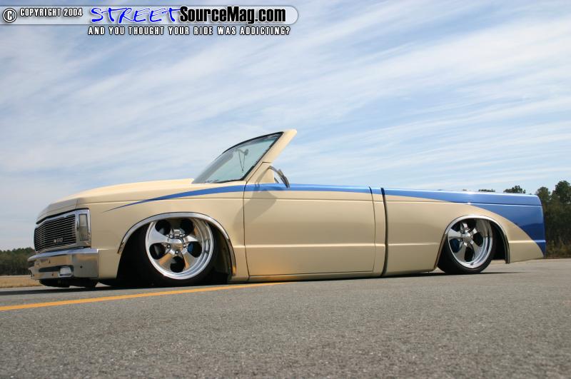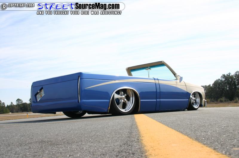 The up’s and down’s of Tito’s S-10 are provided by a fast bag air ride setup. AON Customs built the 2x4” square frame. The setup has a 36” ladder bar setup. Tito also opted to go with rear shocks for a smooth ride. The suspension also has Belltech 3” drop spindles. Tito’s truck rolls on a 18/20” wheel combo. The wheels are American Eagle 212’s and they are wrapped in Nitto low profile rubbers.