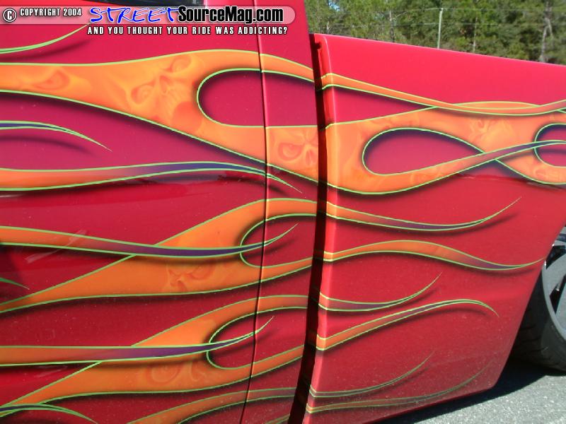 Not yet complete until under the hood had been handled Jennifer would focus her attention to the proper location. The motor, tranny, drive shaft, molded rear-end, gas tank, fan, and fan shroud would all be painted HOK pink. The rear-end would then be sharpened up with a chrome cover while the motor would house chrome valve covers, alternator-fan-nose cover, all pulleys, brackets, power steering pump, power steering cap, radiator cap, brake master and booster, brake lines, fuel lines, air cleaner, a/c cover.