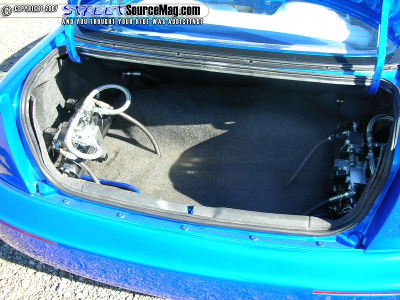 Nothing complements a full custom ride nicer then a low stance. To manage these feats Ryan would install a CCE 2 pump set up. The install would include 4 Optima yellow top batteries along with 8” rams up fronts and 10” in the rear.