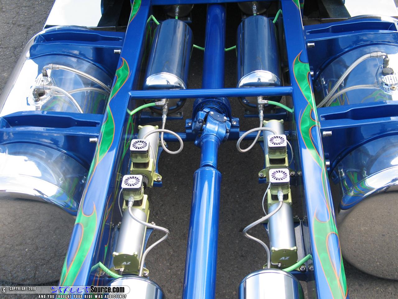 After buying into the family trucking business at 25, Botelho began building custom big rigs on the side, but never getting the chance to build the dream that he so long sought after. “I had been building custom rigs for myself mostly,” Botelho says. “However, someone would usually come along and buy them as soon as they were finished or sometimes even before I would get a chance to finish it.”However, in late 2006, Botelho was asked to participate in the Big Rig Build-Off at the Mid-America Trucking show in Louisville, Kentucky, a prestigious event in the big rig world. The rules are simple enough: each builder has 90 days to complete their build and it must be able to drive into the show under its own power. If the 90 day deadline wasn’t short enough, at the time of his invitation, Botelho was already behind seven days, leaving him with just 83 days to create this beast. Knowing it was time to turn his dream into reality, Botelho began making arrangements to begin the build.Finally being able to use all of the parts that he been hoarding all of those years, Botelho blew the dust off of the rolled over cab from back when he was a teenager and purchased a burnt up 1998 Peterbilt for the chassis and suspension. Deciding to build the frame at his friend’s shop, the truck was moved an hour away to John Chamoro’s shop, Solo Customs. It was there that Botelho and three friends worked tirelessly for fifty days to perfect the chassis and suspension, boxing and smoothing everything. Due to the very nature of the project, nearly everything had to be handmade, from the four link bushings to the rear fenders. The frame was notched over each axle to accommodate for the drop while six 400 psi Slam Specialties air bags provide the lift. Beyond the engine compressor for the air brakes, four Air Zenith compressors and six stainless air tanks provide the air management for this semi. No custom big rig would be complete without some giant rolling attire and thanks to his cousin, who happens to be a machinist, (6) 24.5 Alcoa’s were machined down to 24”, allowing them to be wrapped in Pirelli 305/35/ZR24s.