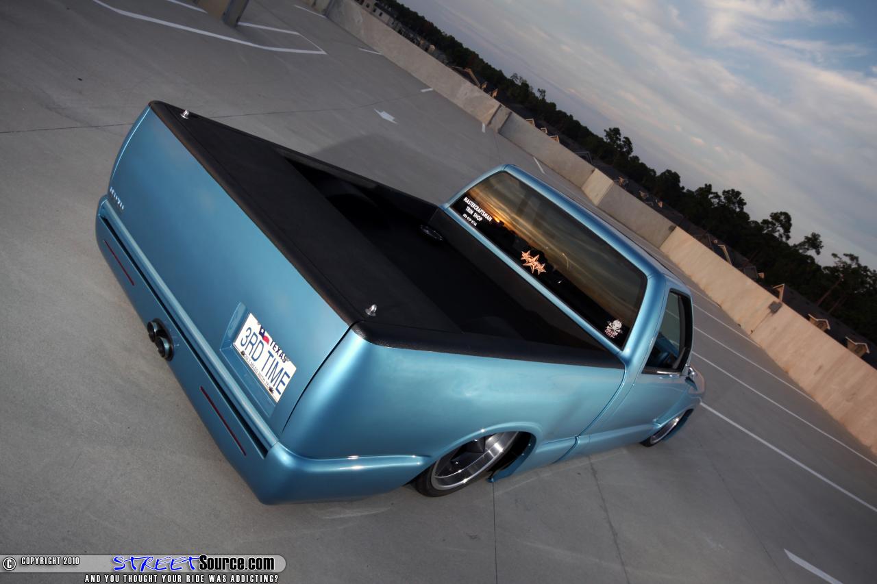 You always hear 3rd time is a charm, right? Well in this instance it is for Scott Stephenson. Scott aka Scooter, as he's known everywhere, knows a thing or two about his truck. He built it from stock when he bought it in 2003. With the help of some good friends, this truck has seen a lot of miles going to shows, many of which have been layed out on the highways draggin' the hell outta the frame and rockers. This 97 Isuzu Hombre named Bessie is Scooter's passion. He will be the first person to tell you "it is NOT an s-10". The first rendition of this clean little Isuzu was just a simple bag job, some 17's, and minor graphics on top of the stock dark green color. He was happy with the progress, but it didn't stop there.