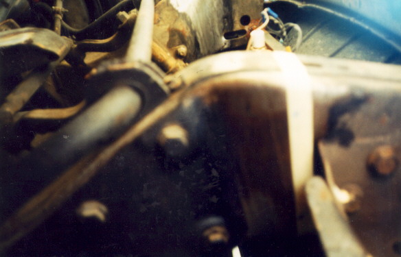 Next is the shot of the truck with the frame horns & bumper removed in one piece. To keep the frame horns from hitting the ground when the truck is laid down, the bottom of the horns get cut down even with the radiator support mounts. The bottom is cut off & a piece of 3/16 plate is cut to box the frame back in. After the welds cool, the bumper with horns attached is positioned back on the truck, 3 1/2" lower than stock & welded in place. By doing the frame horns first, the body has something to be lowered down onto, to keep it supported.
