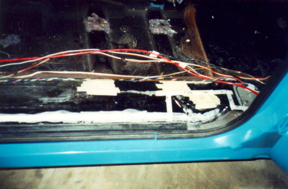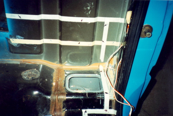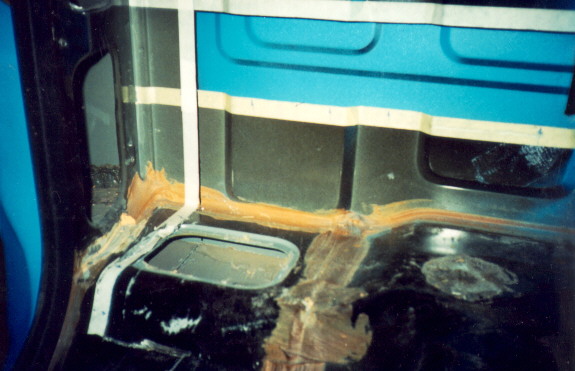 Next you can see how we remove a bigger section off floor so we can angle it to make it appear more stock. In this photo, you can see the section of rear cab wall we removed.