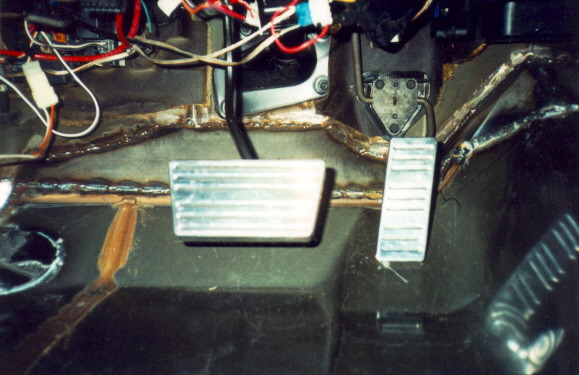Then we move back to the firewall, where we begin tacking it up. Here is the driver's side completely welded up. Once we are satisfied that we have it all welded up, we seal all the welds with autobody seam sealer.   Next, a good coat of paintable undercoating is sprayed on everything to keep rust from starting.