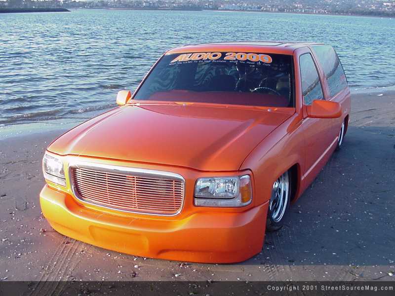 Not only was a Cadillac front clip installed, it was also completely molded together, for a true one-off look. With the new custom molded bumper, grille, hood and headlights, the new overall look that Wendy strived for was beginning to take place. The custom front bumper also was equipped with a molded Trenz billet insert.  Moving on, the wiper cowl was smoothed and the door handles were shaved. Other shaved items include the antenna along with the roof rack. Up top, you will find a power sunroof, provided by American Sunroof Company of San Diego, California.