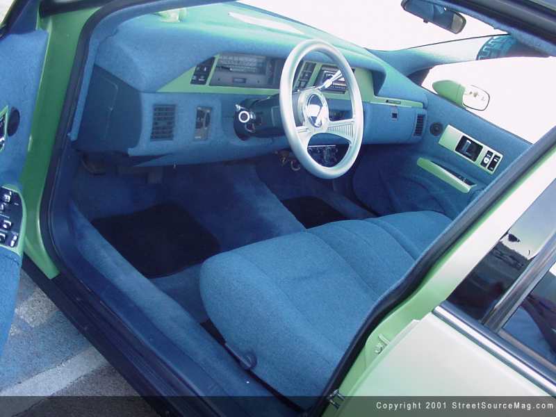 The interior was the next task at hand on the list of things to do to the Caprice. To get started, Jeremy decided to handle this himself, with some help from Jeff Prespent of Mesa, Arizona. First on the list, the dash and the headliner were both pulled and wrapped in blue tweed.   | Billet vents are always a nice added touch with any interior. |