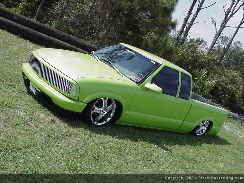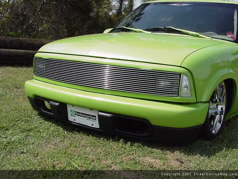 The door handles were shaved, as was the gas filler door, with the filler neck being moved to its new location inside of the bed. In the rear, the taillights were shaved, and LED units were installed in their place, in their new location in the rear of the truck. The rear bumper was removed and a steel rollpan was added in its place. After the body mods were complete, Vickburg Body went to work laying down the paint in Steven's S10.
