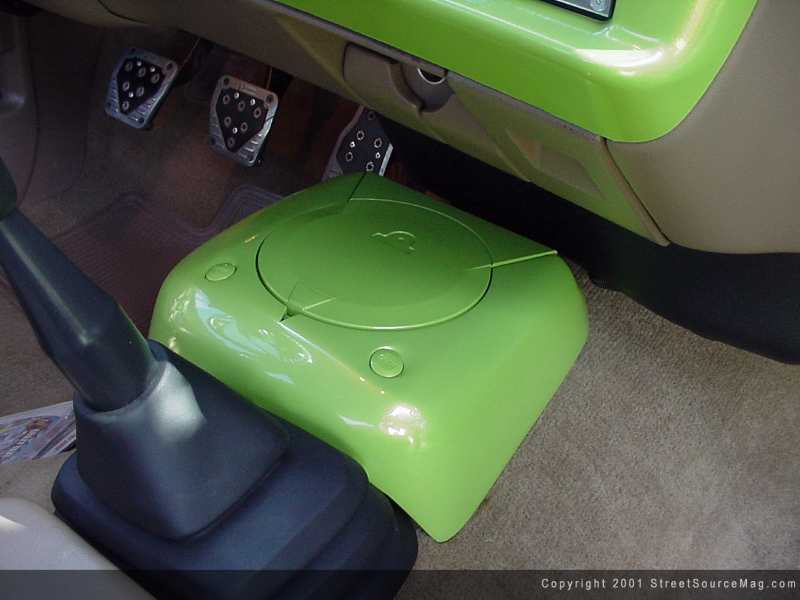 The interior was the next phase in process for Steven and his S10. Vicksburg Body started things off by removing many dash panels and interior parts and pieces and painted them to match the exterior.  | Even this sony machine was painted to match! |