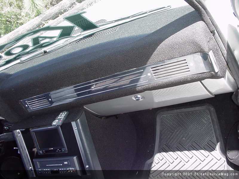 Finally, the captain's area of Bradley's Chevy needed to upgraded so the man himself could be comfortable while out cruising his trophy winning masterpiece. The factory dash was recovered in gray tweed and billet instrument panels were installed, giving the dash a much better appeal to the eyes. Also adding looks to this older model Chevy, silver and teal gauges from Brent Yawn Customz were installed. Seats from a Chevy Camaro were wrapped and installed, replacing the factory bench seat.