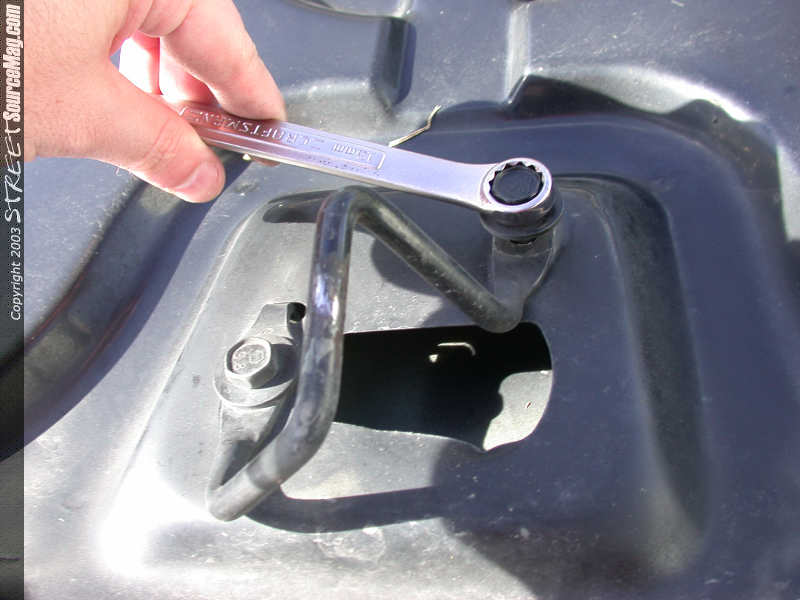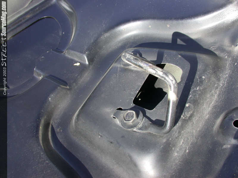 Now simply reattach the hood latch to the new hood in the exact opposite way you took it off