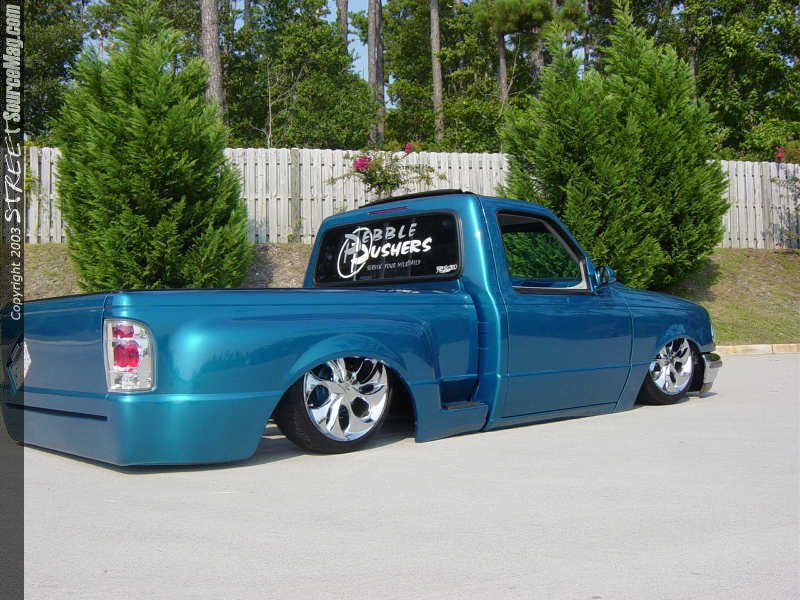 The gas door and tailgate handle were also shaved while the tag was relocated at an angle in the tailgate partially overlapping the body lined for that added difficulty factor. One last touch before any paint could be sprayed was to smooth out the firewall.  Now that all the bodywork was done, which was done by Michael Medlin from Wingate, NC, it was time to call up Chris Stilwell also from Wingate, NC to spray the PPG Metallic Green with House of Color Blue Pearl. Once the paint was done the inside of the bed was Rhino lined for protection.