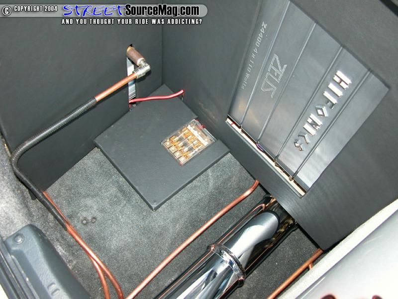 Of course there is still a TREO DVC 10” sub all powered by a HiFonics Zeus 4400 and 2600 amps all coursing through 0 gauge wire done by Mark himself. Now what girl wouldn’t want to sit in that back seat (he he he)?