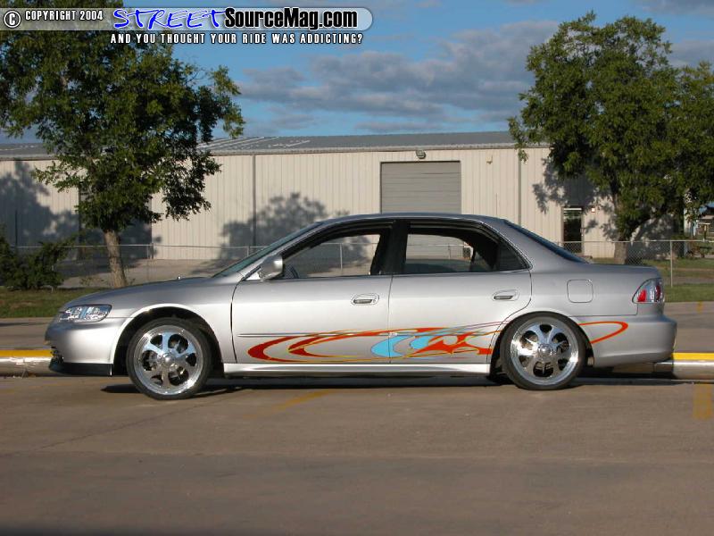 So after a chat with Mark we learned that boredom had less to do with building this ride and a lot more with getting the attention of his club Pleasures, which he says the logo is the best feature of his Accord. Mark accomplished that goal quickly with help of his wife Kristie, his upcoming fabricators Meghan and Dylan, his crew of Pleasures, and the helping hands of Synthetic Designs, Expert Car Audio, Drop Zone, and Leather Trim Limited.