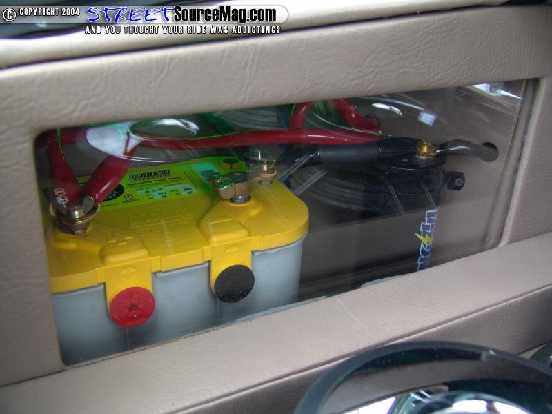 The front utilizes 6” cylinders while massive 10 inchers handle the back end and are all controlled by 10 switches. Chad hand built all four custom strut assemblies to be able to lay the car out. To make sure his Mazda still rode as close to the way it did when he bought it, he installed accumulators for all four corners. Power for this system is a handled by three yellow top Optima’s.