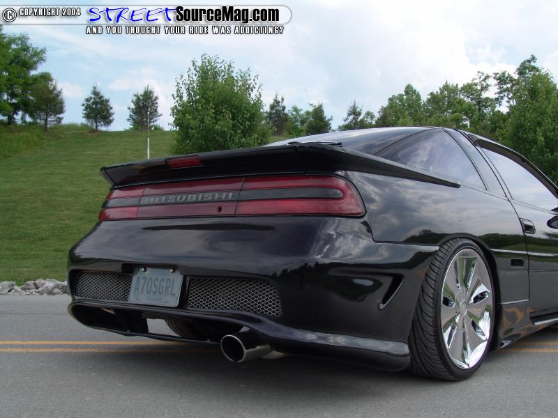 First thing she wanted to do was to change the body a little from its stock form. Both the factory bumpers were scrapped in favor of a set of fiberglass Invader type 1 bumpers along with the addition of Invader side skirts.   Since the car had a few year of wear and tear on it, Michelle opted to have the roughness smoothed out when she had the body kit added. Once ready for paint, the entire car was sprayed black with House of Kolor violet ice pearl.