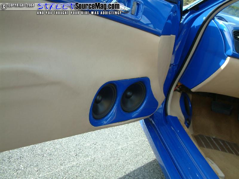 A set of custom-built door panels with painted inserts would then be installed. Next Erick would build some custom kick panel’s front and rear with painted inserts. The front kick panels would house JL Audio 6 ½’s while the rear kicks would be equipped with 5 ¼ and tweets. The rear deck would then be rebuilt with a sub enclosure housing 2 JL Audio 12w7’s. Pushing the system would be 2 100.1, 1 450.4 and 1 300.2 JL Audio amplifiers.