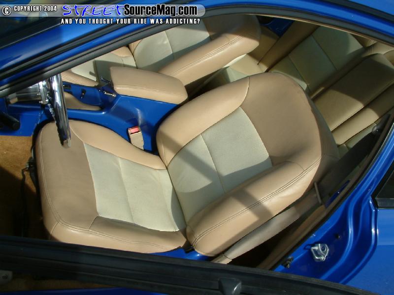 Helping to keep the current Erick would then install 2 Optima yellow top batteries, one 15-ferret cap along with an assortment of high dollar wiring and Dynamat. Finishing off the interior, Donnie would have the seats wrapped and stitched in tan vinyl with ostrich inserts. Billet inserts where installed into the stock gauge cluster and a BAD billet steering wheel would be installed for the final touches.