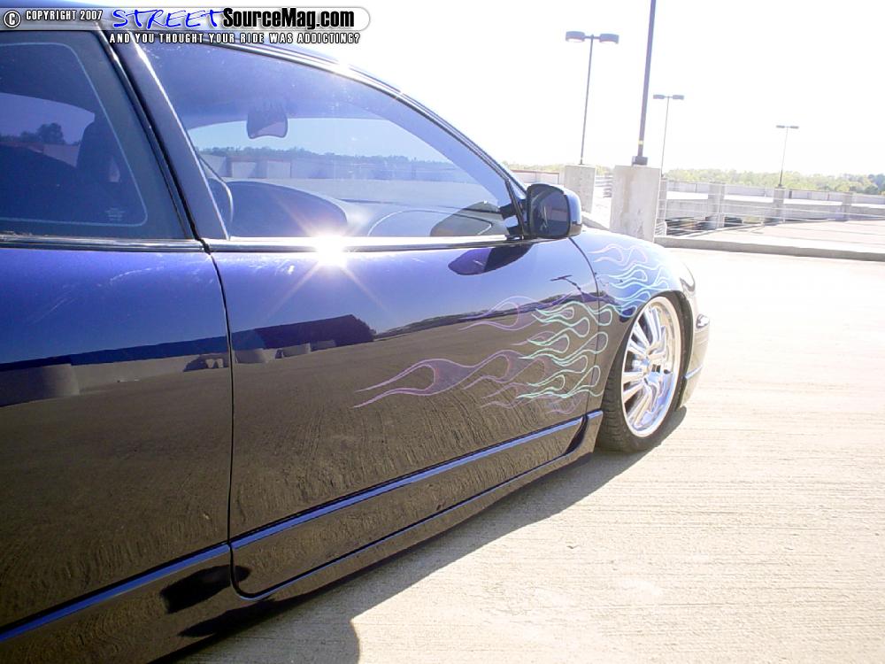Keef’s gun also made its way inside the car spraying several parts to match the exterior and Jackie Wade sprayed a custom Pontiac logo into the center console. Blue and tan leather make the long trips to car shows that much nicer. Being the billet junkie Chad is, a Billet Specialties Flame steering wheel replaced the factory one.
