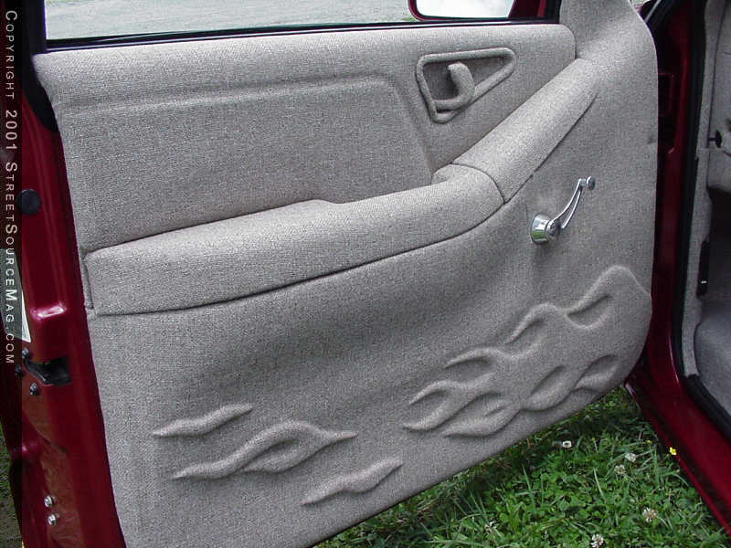 The engine compartment of Mike's S-10 was treated to several chrome and painted goodies. Clean is the main key to winning shows and Mike's engine is as clean as they come. To get a little performance from the stock 2.2 liter 4 cylinder, Mike added a chrome Hot Shot intake.