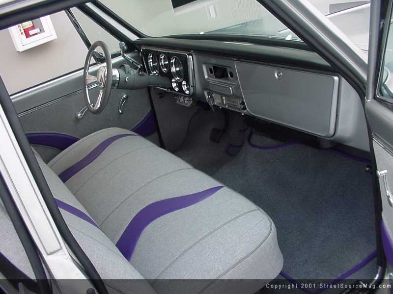 Bringing the panels together, the seats were stitched with the same gray and purple tweed.  Having an older ride, you will usually encounter metal panels. With Marks '69, all metal panels would be sprayed with a coat of the Porsche silver paint including the dash.