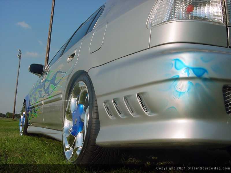 With the car looking completely awesome Doughboy found a way to make it even better by laying down some dope ass airbrushing that was subtle yet sweet and eye-catching something that everybody loves, skulls.  Not only did the master at hand of the airbrush hit perfection on the outside of the car he did it again on the interior. Doughboy did his best to bring the interior up to speed after his great outside work he layed skulls on the dash steering wheel and door speaker covers to make Levi's interior perfect.