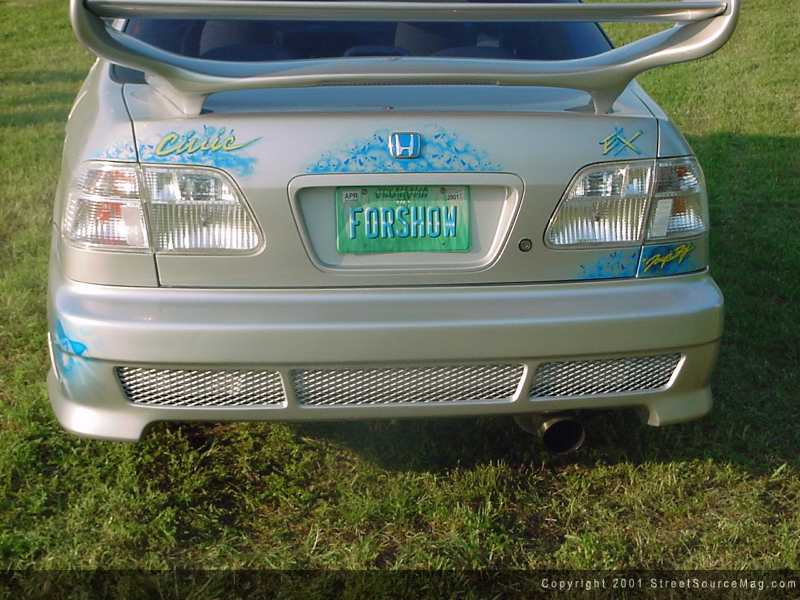 With the car looking show worthy it was time to beef up the little 4-banger to keep up with those on the Fast and the Furious. First off Levi junked the muffler and hooked up a Tenzo R cat-back system. With the car now sounding like a bumblebee, Levi strapped on an AEM cold air intake to get the engine some fresher air and a Tenzo strut bar to keep the corners tight. Along with the Chrome intake and strut bar Levi has plenty of wire loom and Doughboys to make this a show-winning engine.
