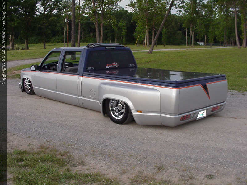 The new mods gave Nelson's dually a new look, but KUSTOMWERKS was not quite finished. Next, they shaved the door handles and the antenna and installed a Precision bumper and phantom grille shell.  The factory hood was removed and a steel cowl induction hood now resides in its location. To allow the hot Tennessee sunshine into the cab, KUSTOMWERKS installed a massive 40"x55" Street Beat sliding ragtop. The body mods were complete and the truck was prepped and ready for paint.