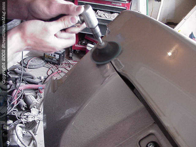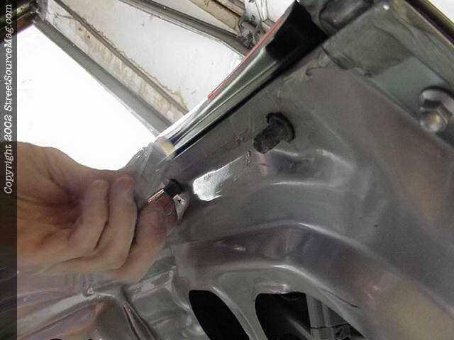 4. Once everything is removed you will then need to grind the paint away from the metal in the areas that you intend on welding up.