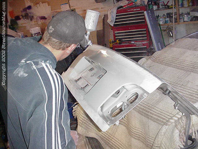 11. Once the putty is sanded we went ahead and sanded down the trunk and prepped for primer. 12. Once ready, the primer was sprayed and ready for whatever we decided to do next.