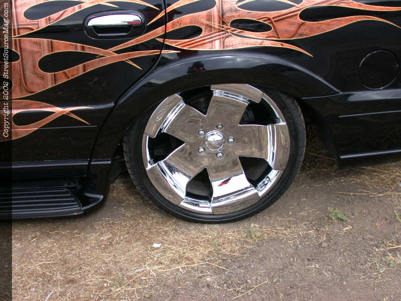 Through out the copper colored flames you can find numerous amounts of airbrush work with skulls and many other eye-catching items. To help bring out the tribal work, Spiders decided to out line the work with yellow pin stripping.