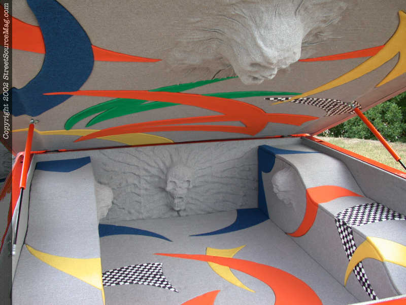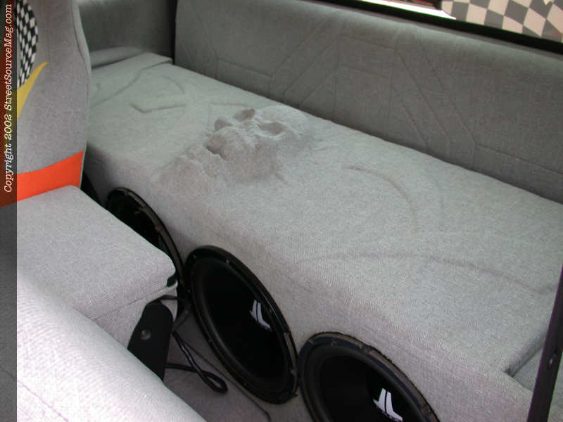 Found through out the interior you will find in the dash a Clarion CD player and in the extended cab you will find a set of JL Audio subs in a tweed covered box pushed by JL Audio Amplifiers. Advanced Car Creations of Anaheim CA wired the stereo system.