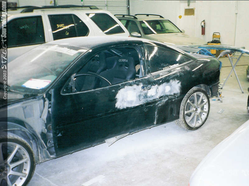 PorkChop had to straighten out the crotch rocket gas door (not quite done right by somebody who will remain nameless). Now it is blocked and ready to rumble. Here is where we get to the good stuff!! The carbon fiber flames are... well... SICK!First he wet sanded the hood with 500 Grit.