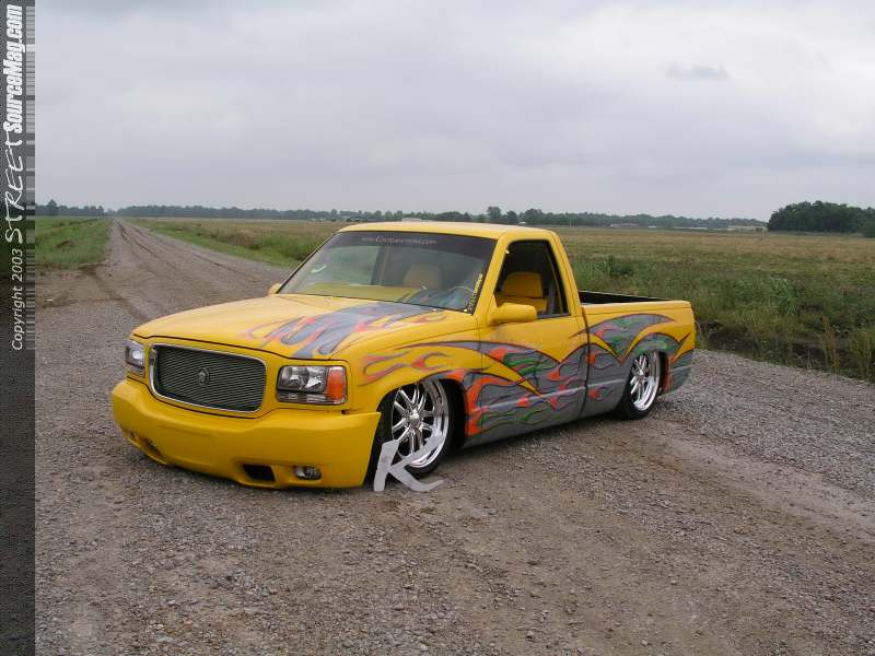 To give the rearend the same smooth ride another set of BellTech shocks was added to the mix. To give the bags the pressure they needed four Thomas 317 compressors were added along with two 5-gallon air tanks. To supply the air to the bags and for control off all four corners (8) ½" Parker valves were plumbed thru ½" stainless steel tubing.  For times when compressed air just wouldn't hack it Jessie opted for a 2 nitrogen bottle set up in the bed area of the GMC. To finish that suspension off Jessie decided the truck needed some new wheels so he called upon Eagle Alloy Wheels for a set of there new Eagle 212's in the form of 20's wrapped in B.F. Goodwrench 245/40/20 skins. Now that Jessie had the GMC's frame planted firmly on the ground it was now time to tackle the other projects that lay ahead.