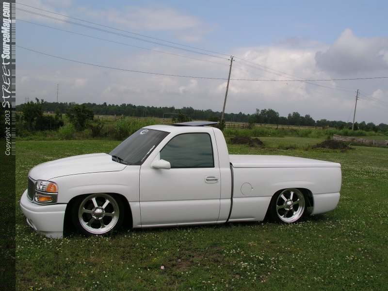 So Brooks opted for Budnik Tiller wheels in the form of 20x8 front and 20x9.5 in the rear. The front wheels were wrapped in a 245/40/20 Michelin Pilot skin while the rear received a 245/35/20 for better traction. Now that the Denali's outside was looking righteous it was time to give the interior the same treatment. So Brooks covered the factory interior in dark granite leather from KatSkinz. A Wabasto 41" electric sunroof was then installed to allow the Arkansas sky to shine thru. An Escalade instrument panel was installed to keep a constant eye on all functions. To finish the interior treatment off billet accessories were added to the now clean interior. Brooks decided that an Alpine CDA 7864 headunit would fit just perfectly into the GMC's buildup and backed it up with a combination of Kicker Comp highs, mids and subs. Alpine and Kicker amps were then installed to power the entire system.