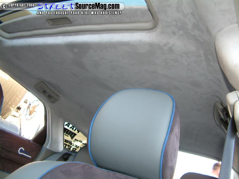 The rearview mirror would be swapped out with a chrome one from a 300m. Air Ride Tech gauges and control panel would then be glassed into the ashtray to finish off the interior modifications.