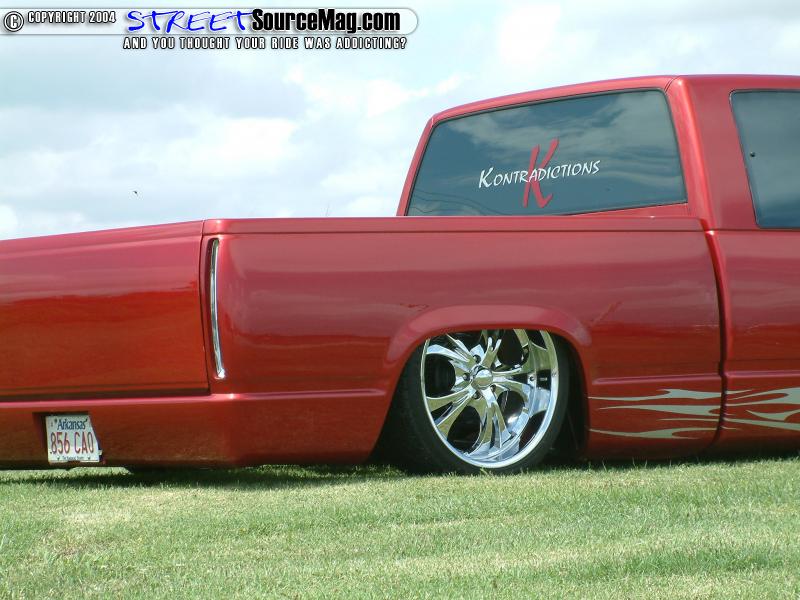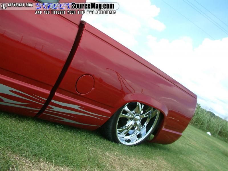 Four 3-gallon tanks, nitrogen, Parker ½ inch valves and ½ inch line would run the system. Belltech drop spindles and control arms would then be installed to help bring the front down with the rear. The battery tray would need to be modified to allow room for the Boss 304 22x9.5 inch wheels wrapped in 285/30 Dunlop rubber. It would now be time to move to the exterior of his new ride.