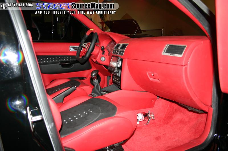 With all that done to the exterior of the car, Kindig-It Design knew they had to completely change up the interior. And they knew exactly who could do it. Justin Stephens of JS Custom Interiors started out by wrapping the whole dash in red hide. The door panels were also wrapped in red hide, and black inserts with aluminum breather holes.   The headliner was custom built and wrapped in red hide as well. A custom built rear seat surround and sub enclosure bring a more custom look to the rear, while the chopped and shortened Momo single seat finish’s it off.