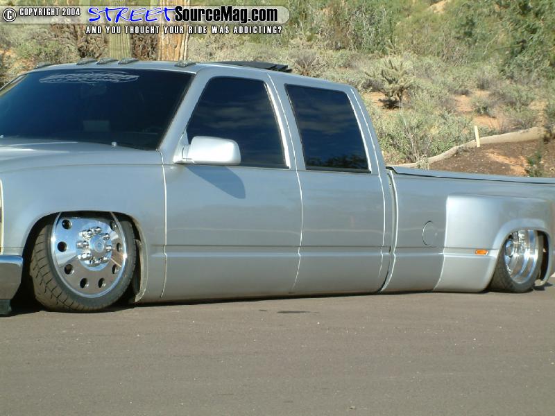 Four FABCO air valves would be used to push the air into the bags while 2 VIAIR 400’s keep the air tanks full and ready for use. With the frame laying out flat it was time for Kevin to apply a 3-3/4 inch body drop to lay the rockers flat on the asphalt and help tuck the 19-inch Alcoa wheel custom made to fit the Dually.