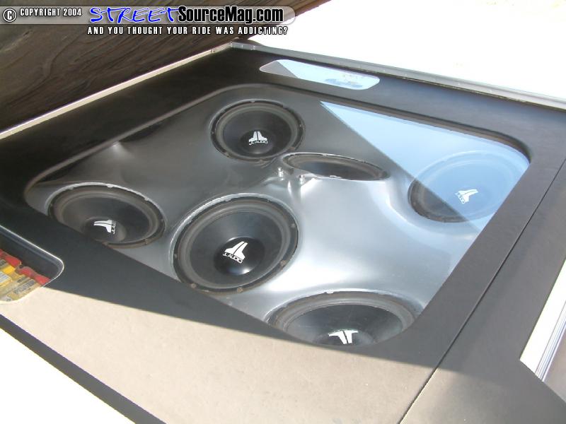 Two extreme 500-watt amps where installed to help push the highs located in the cab. The stereo work would be done by a collaboration of House of Sound, Professional Automotive Engineering, and Grunion Fabrication.