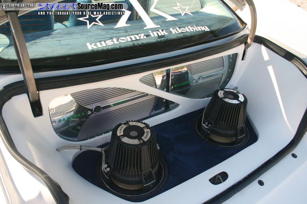 A set of Bazooka Chrome amps would be installed to push the system while two Optima blue top batteries, a Stinger 200 amp battery isolator, wiring and fuse distribution blocks would be installed to keep steady current.