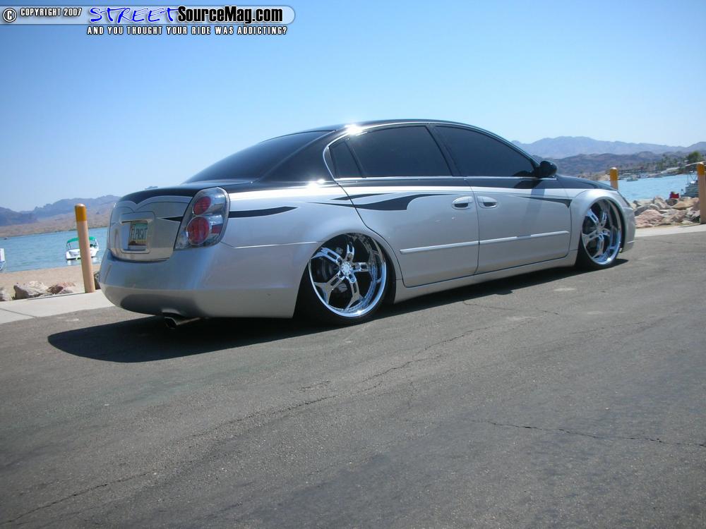 Two Viair 450 compressors would then be installed to fill two chrome 3-gallon tanks. With the suspension in place the Altima would now lay out on 22x8.5 Helo HE834 wheels wrapped in 235 Toyo Proxy 4’s. Behind the wheels and finishing off the drive train would be a set of HP Motorworks slotted, cross-drilled rotors.