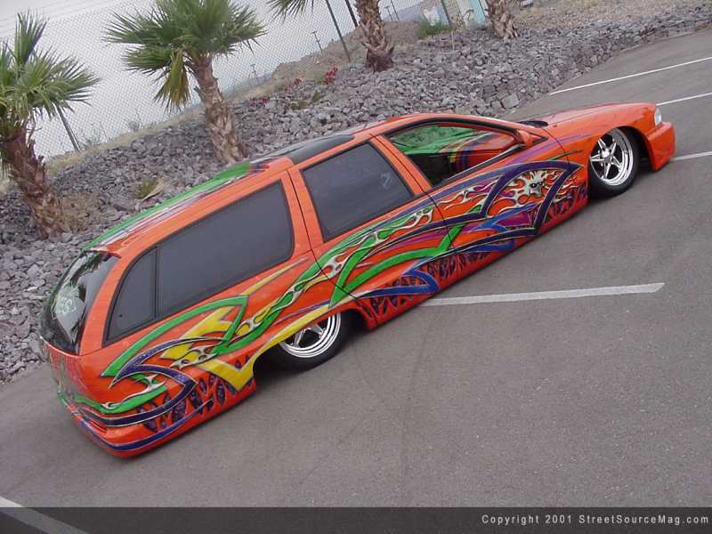 Working his way back, the Doors would be shaved along with removing the entire wood grain paneling. Working the roof, the luggage rack would be removed and the holes would be filled and smoothed out. Now to the rear of the wagon, Max would ditch the license plate box along with the taillights.  | There was lots of work needing done to the rear to keep the smooth look Max was striving for. | In their place Max would add sheet metal along with a smoothing touch of bondo. To provide lighting in the rear, a set of LED lights would be molded in. Feeling that it wasn't quite done Max would decided to mount up a custom roll-pan along with a frenched in plate box.