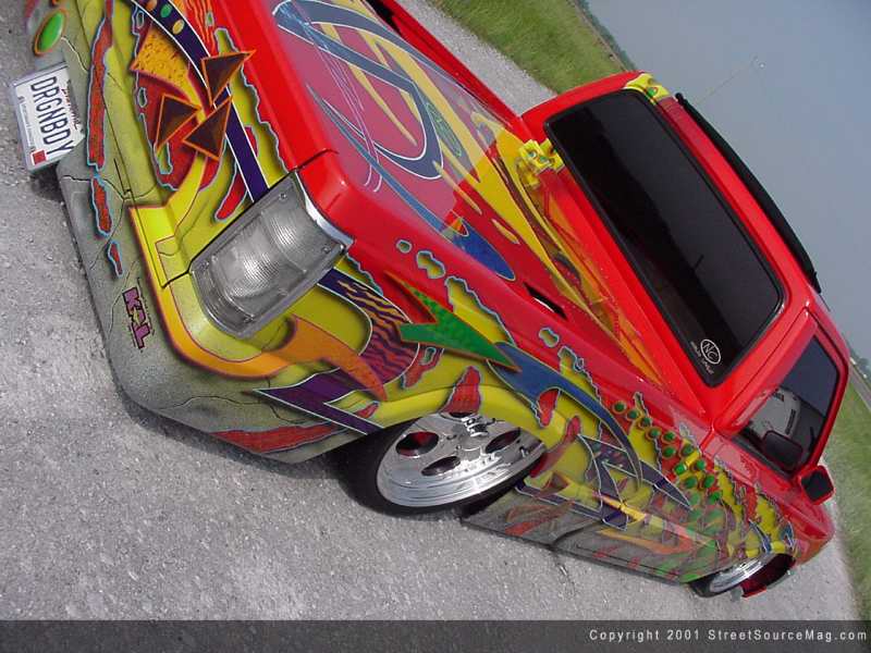 You see, Lance gives his buddy Ty full credit for what you see before you. Anyone who's in the show scene knows some of the history of this truck. But that doesn't take away from what's so special about it. This truck is just as special to the scene today as it was several years ago when it began its creation. Starting out, this 1989 Mazda B2000 had to be set to a comfortable level. In order to do this, a 2 ½ inch body drop was performed, lowering the body down over the frame rails quite nicely. In order to lift the truck from it's laid out state, Firestone airbags were installed at all four corners, utilizing large 3/8" line and fast electric valves in the 3/8" variety. In the rear, a custom c-notch and 4-link allow the Mazda to lay completely out.